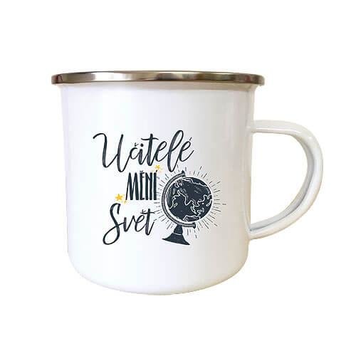 Dekorační plechový hrnek s potiskem - učitelé mění svět