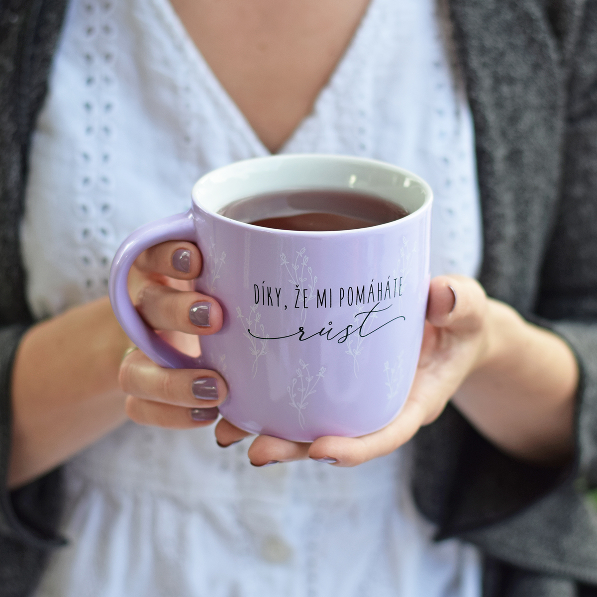 HOUSEDECOR Levandulový hrnek XXL - Díky, že mi pomáháte růst.