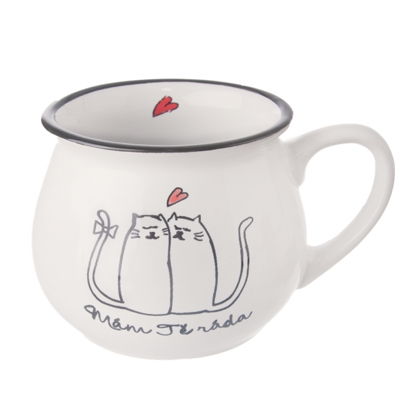 Hrnek s uchem s dekorem. Materiál: keramika. Vhodný do myčky i MVT. Rozměry: objem 0,32 l, pr. 9,5 cm, v. 7,5 cm.