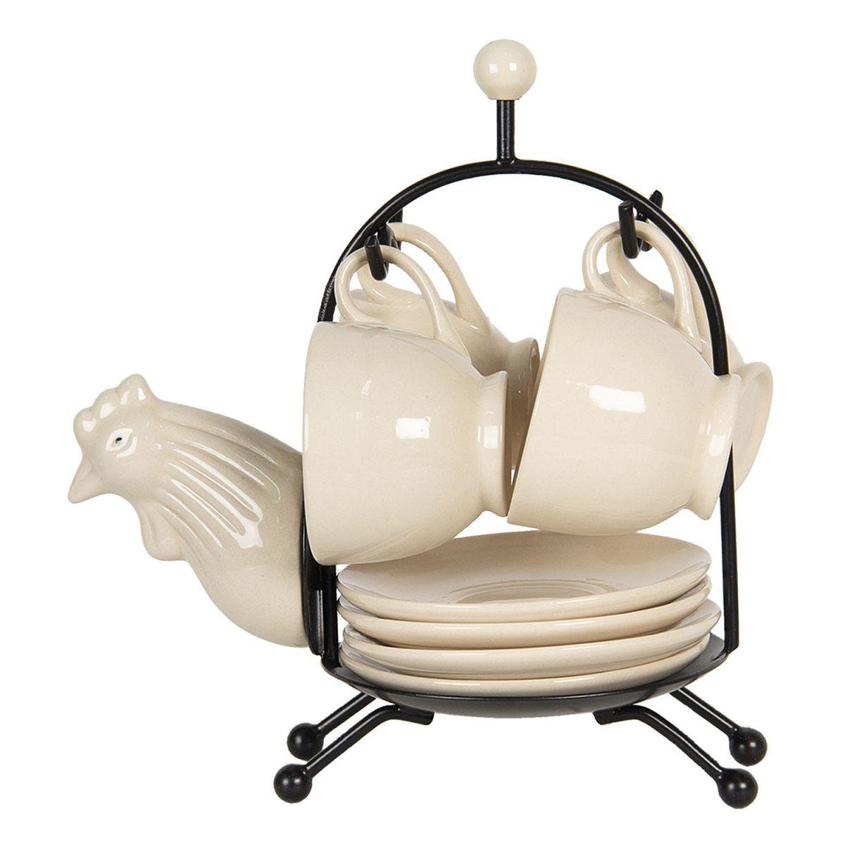 Stojánek se čtyřmi keramickými šálky a podšálky