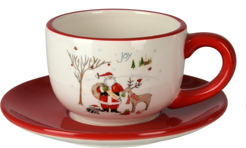 Keramický hrnek s podtalířkem - Santa se sobem.