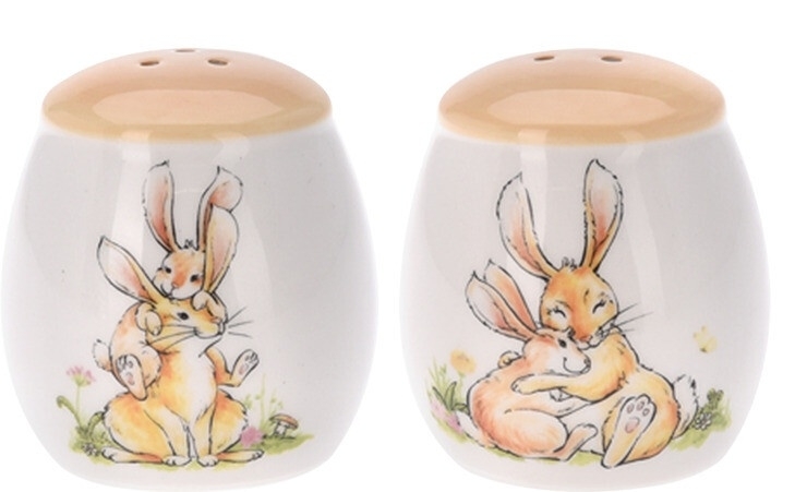 Kořenky na sůl a pepř v jarních barvách s motivem zajíčků.