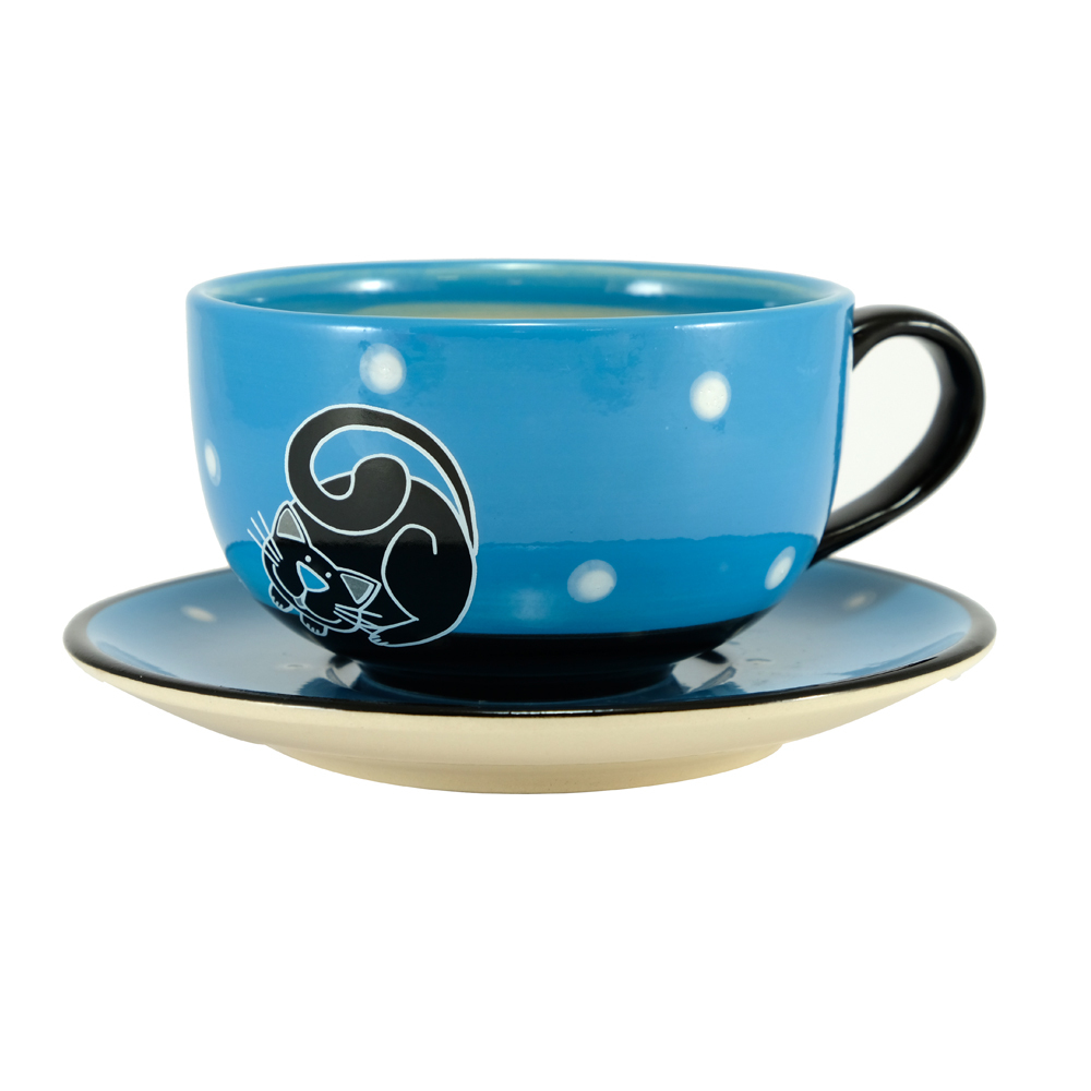 Šálek s podšálkem s roztomilou kočkou. číst celé
