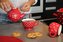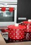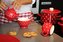 - Poutavý design: červená barva s bílými puntíky oživí každý stůl.