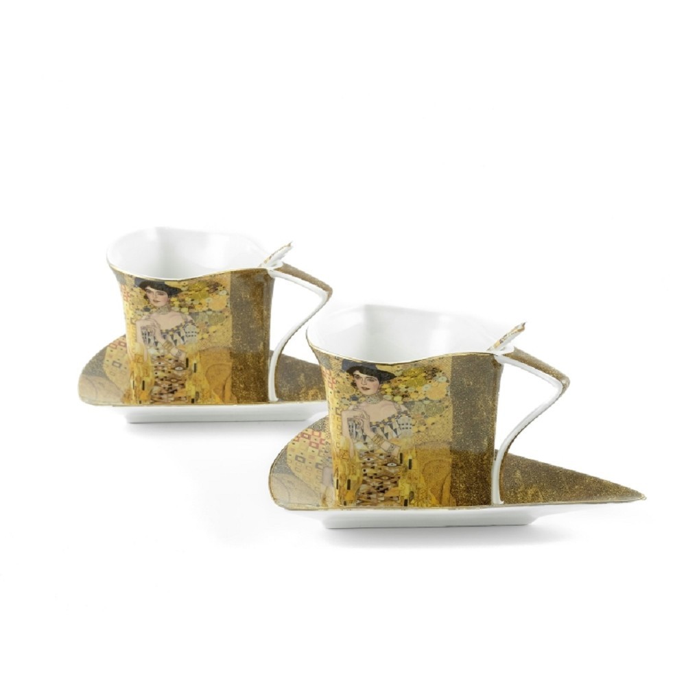HOME ELEMENTS Sada - dva tvarované šálky 250 ml s podšálky a lžičkami - Klimt Adele
