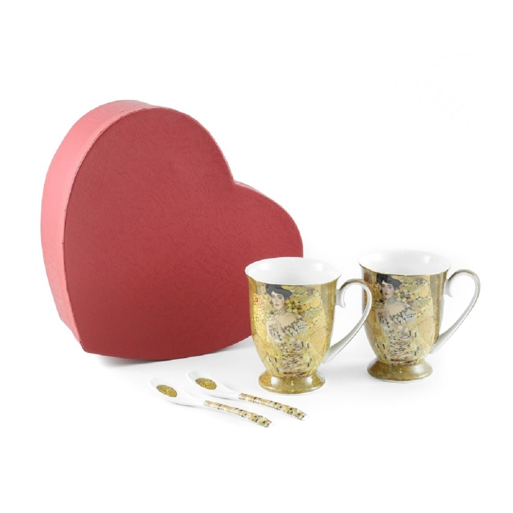 HOME ELEMENTS Sada - dva tvarované šálky 280 ml se lžičkami - Klimt Adele