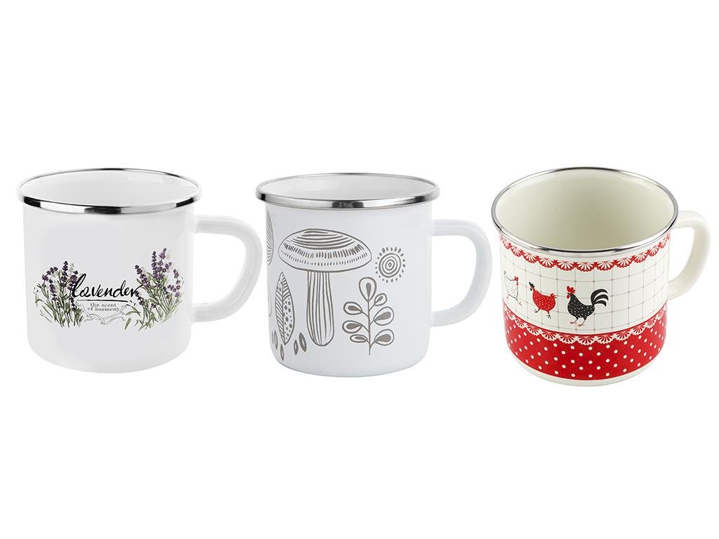 HRNEK ROVNÝ SMALTOVÝ 9CM 550ML SMĚS DEKORACE, 3 KS S DEKORACÍ PANKY, 3 KS S DEKOREM FLORENSIS A 2 KS S DEKORACE PORTOBELLO
