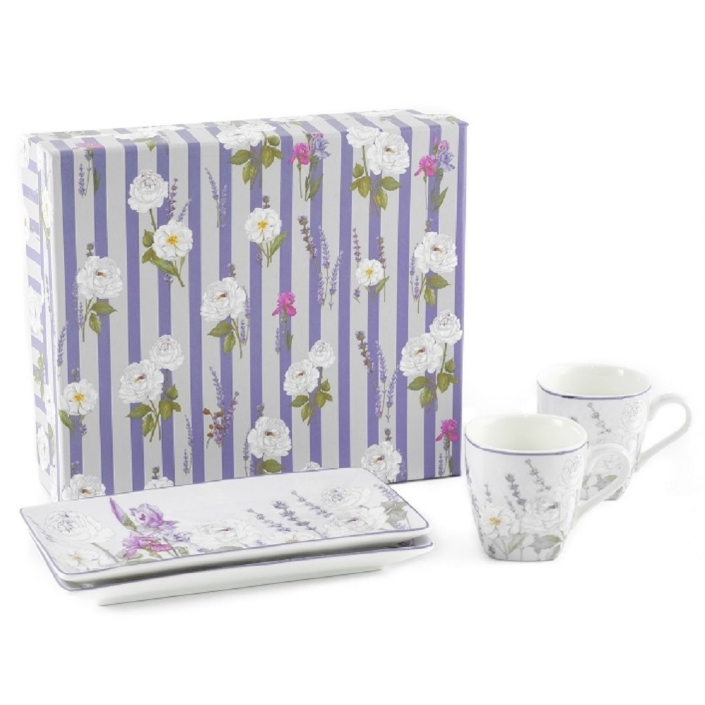 HOME ELEMENTS Espresso set 2 šálky, 90 ml, s podtácky, Levandule