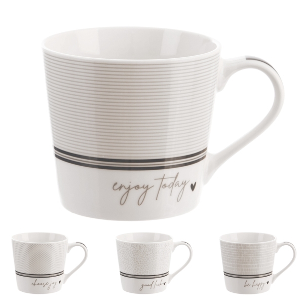 Hrnek s uchem. Materiál: porcelán. Mix dekorů. Rozměry: objem 0,44 l, pr. 9,5 cm, v. 9 cm. Vhodný do myčky i MVT. číst celé