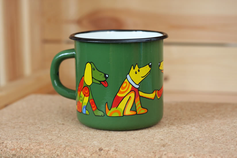 Smaltovaný hrnek 8cm - tmavě zelená - pes