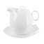 Tato souprava obsahuje hrneček s podšálkem a konvičku, které snadno do sebe zapadají a šetří místo. Je vyrobena z kvalitního porcelánu, který je odolný a vhodný pro každodenní použití. Souprava je plně kompatibilní s myčkou nádobí i mikrovlnnou troubou, což zaručuje pohodlnou údržbu a rychlou přípravu čaje.