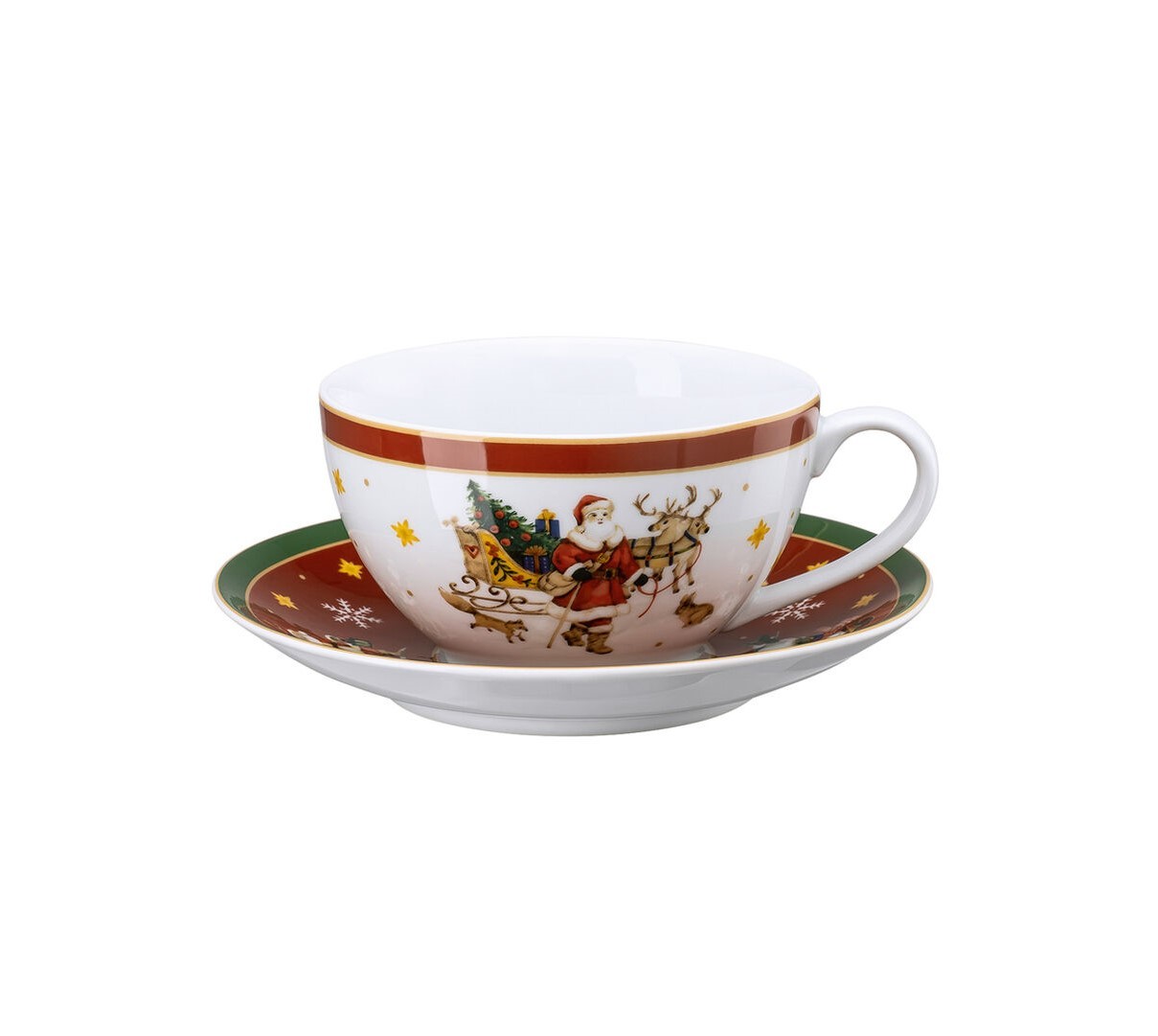Vánoční hrnek s podšálkem na cappuccino/ čaj Veselé Vánoce, 430ml červený Rosenthal