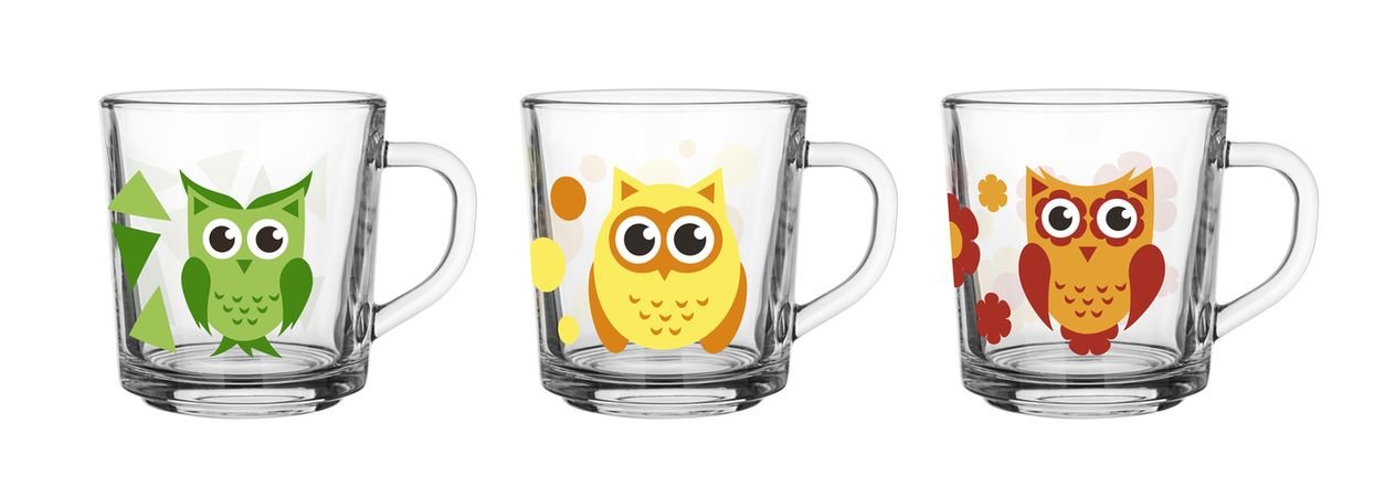 hrnek 220ml-3ks-dětský ŠIMON, SOVY-3DEK, sklo