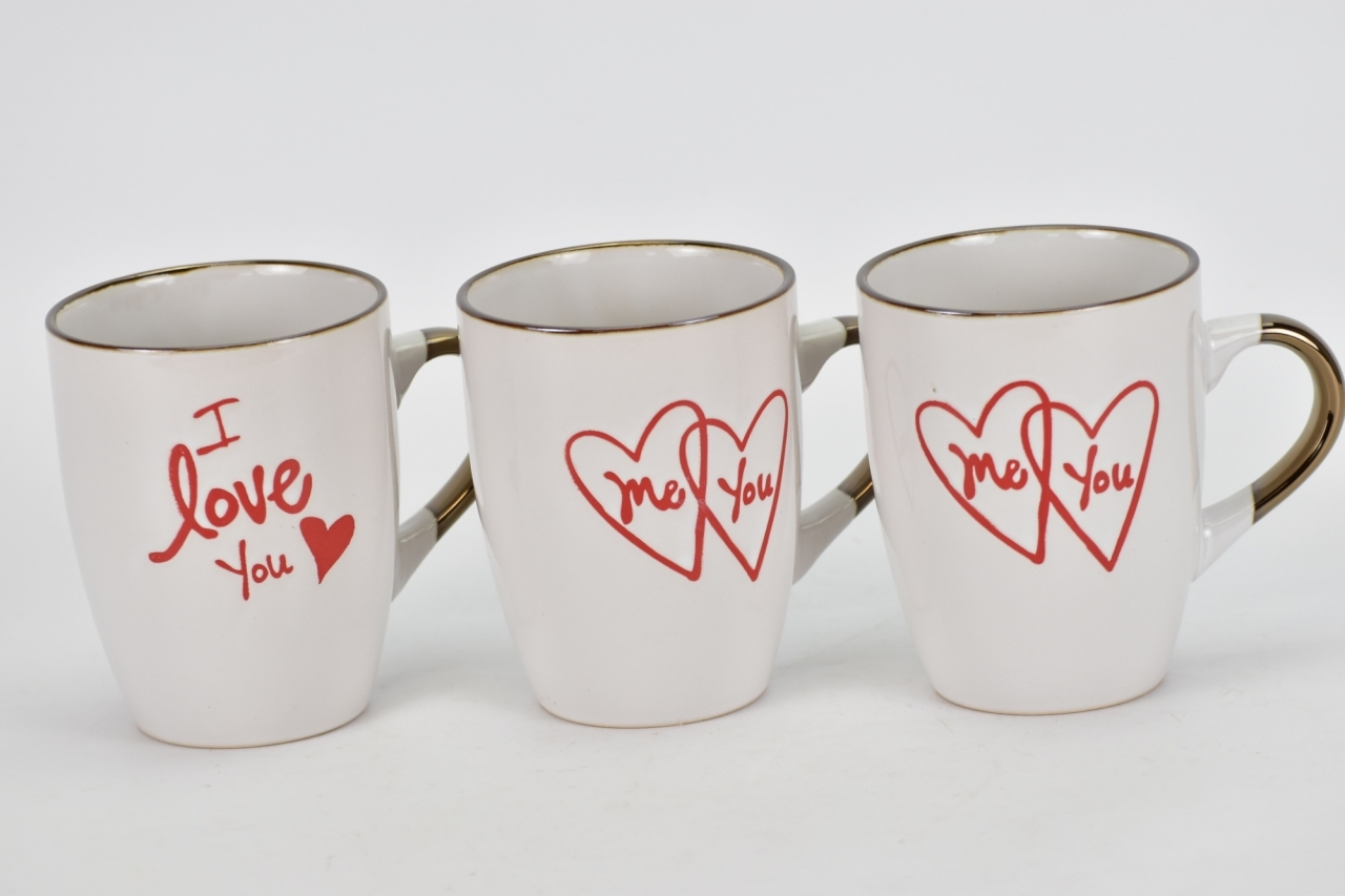 Kameninový hrnek Love You bílý 305 ml II. jakost, sada 3 ks