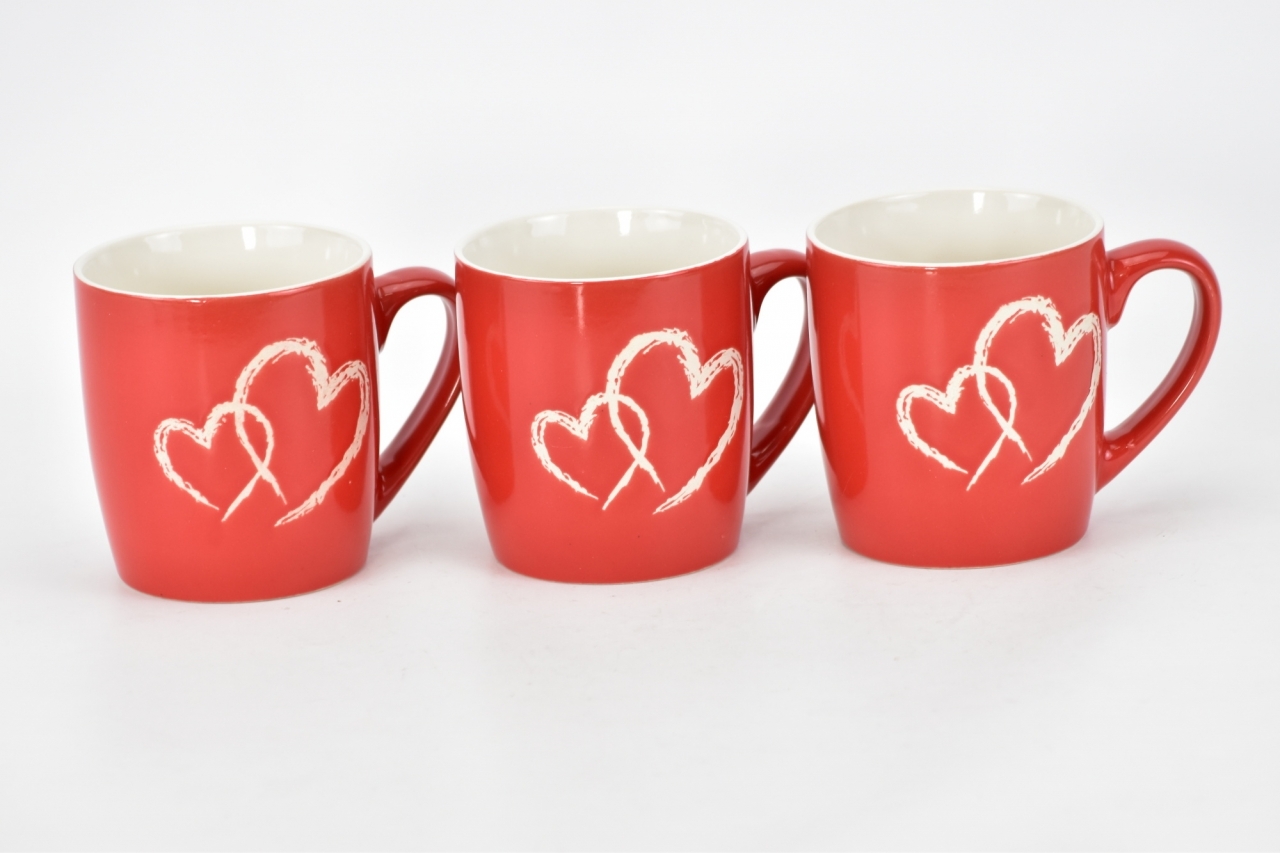 Kameninový hrnek se srdíčkem červený 300 ml II. jakost, sada 3 ks