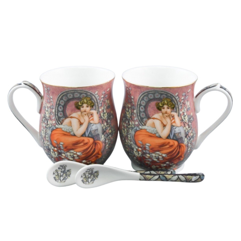 HOME ELEMENTS Sada dvou šálků ml se lžičkami, Mucha tmavý