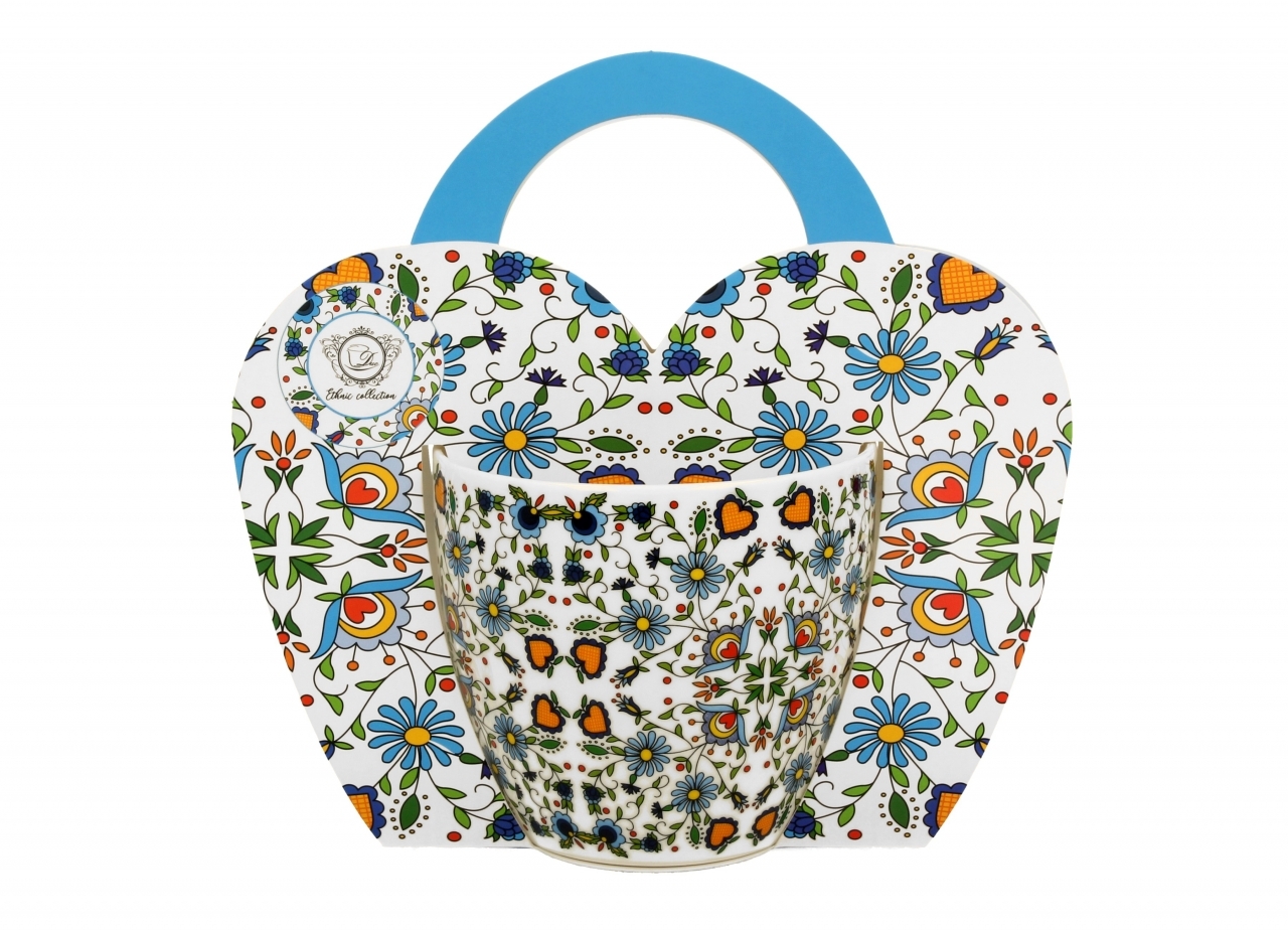Porcelánový hrnek v papírovém košíku z kolekce Kashubian.
