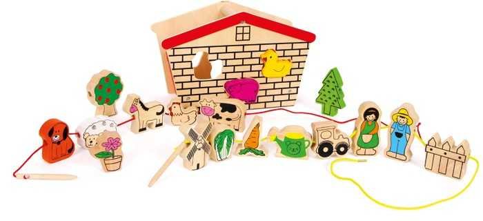 Small Foot Dřevěná motorická hračka provlékací hra Farma