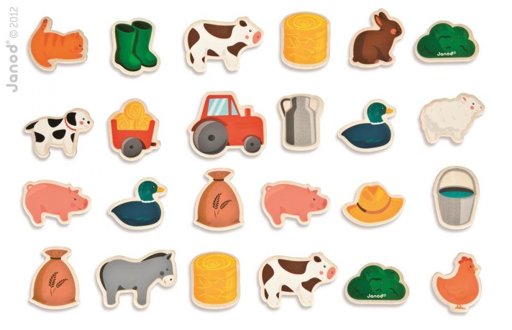 Dřevěné magnetky pro děti Zvířata na farmě Janod 24 ks od 2 let