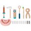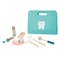 Drevená zubárska súprava pre deti v textilnej taštičke značky Tooky Toy umožní deťom hrať sa na zubára doma aj na návšteve! Vďaka bohatej drevenej výbave, ako je vŕtačka, kliešte, zrkadlo, kefka ale aj samotné zuby, sa deti budú cítiť ako skutoční profesionáli. Všetko zubárske vybavenie po úspešne zvládnutom zubárskom zákroku zase upratá do jednoduchého látkového puzdra s držiakom. Sada vás poteší aj vďaka svojej skladnosti a menšej veľkosti! Tento detský zubársky kufrík ľahko vezmete aj na cesty.
