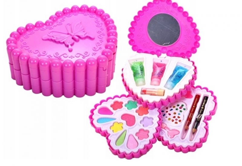 Kosmetická sada ve tvaru srdce pro dívky SE ZRCÁTKEM. Perfektní pro malou princeznu, která se chce obléknout na ples nebo párty s panenkami.Kosmetika je pro děti zdravá a bezpečná.