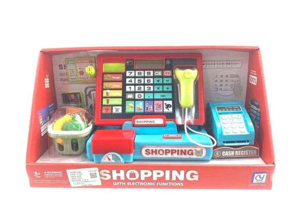Kasa na baterie z akcesoriamiW zestawie: kasa fiskalna z kalkulatorem, skanerem i czytnikiem na kartę pieniądze 3 paragony karta produkty spożywcze (banan, ryba, 2 pączki, marchewka, pomidor, kawa, ciasteczka, chipsy)Funkcje: działający kalkulator funkcjonalny skaner 8... číst celé