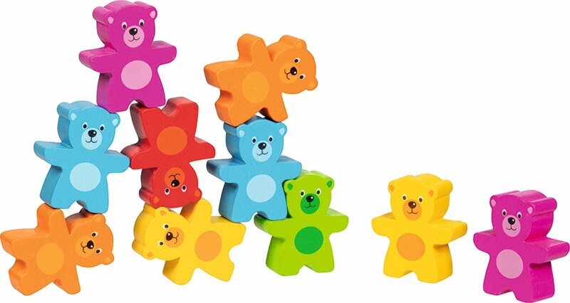 Drewniana gra w układanie kolorowych misiów zainteresuje każdego gracza, który nie obawia się podejmować nowych wyzwań. Zestaw zabiera różniące się kolorami drewniane misie, które niczym cegły będą stanowi materiał budulcowy dla stworzonych konstrukcji. O tym, co z nich powstanie ostatecznie zadecyduje sam gracz. Mogą to być klasyczne układy typu, mozaikowa ścianka lub wieża, jak również zupełnie nowe, innowacyjne rozwiązania, powstałe zgodnie z wyobraźnią dziecka. Gra w układanie kolorowych misiów to doskonały pomysł na prezent dla chłopca i dziewczynki.