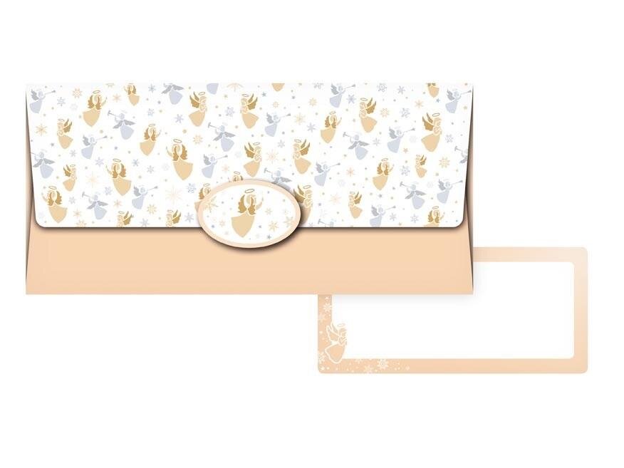 Koperta podarunkowa. Wewnątrz znajduje się ozdobna karteczka, na której można napisać życzenia. Każda koperta jest zapakowana osobno w folię z zawieszką euro.
