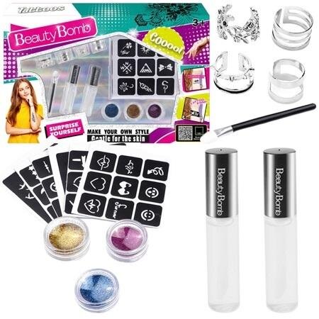Zestaw tatuaży to wspaniała atrakcja na rodzinnych przyjęciach, festynach, a także do codziennej zabawy! Oferowany zestaw jest w pełni bezpieczny! Nie zawiera toksycznych substancji! Jeżeli wzór już się znudzi możemy z łatwością usunąć go za pomocą wody i mydła! Tatuaże możesz ozdobić brokatem, by zachwycały przyjaciół i rodzinę. Baw się, twórz, kreuj swoją osobowość!