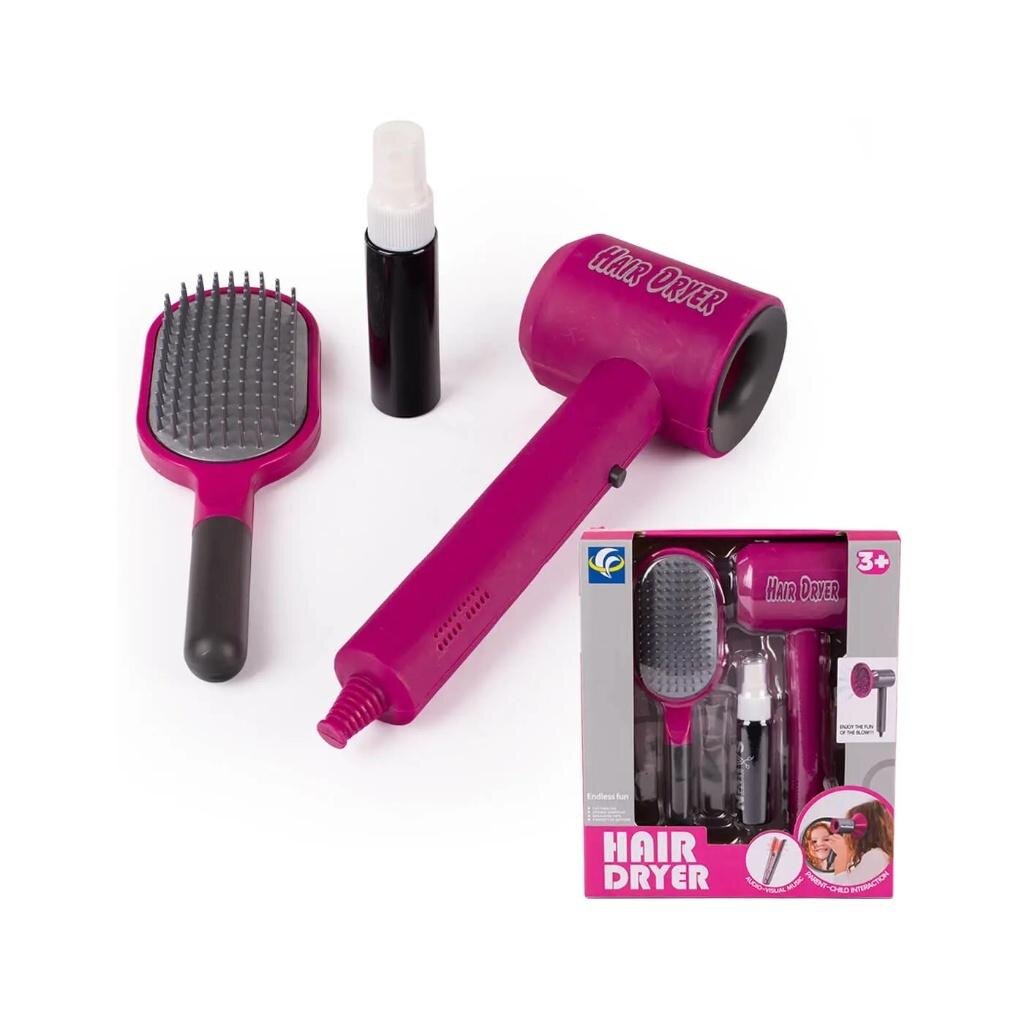 Zestaw fryzjerski dla dziewczynki - suszarka, szczotka, pojemnik na wodę ze spryskiwaczem - idealny do kreatywnej zabawy w salon fryzjerski