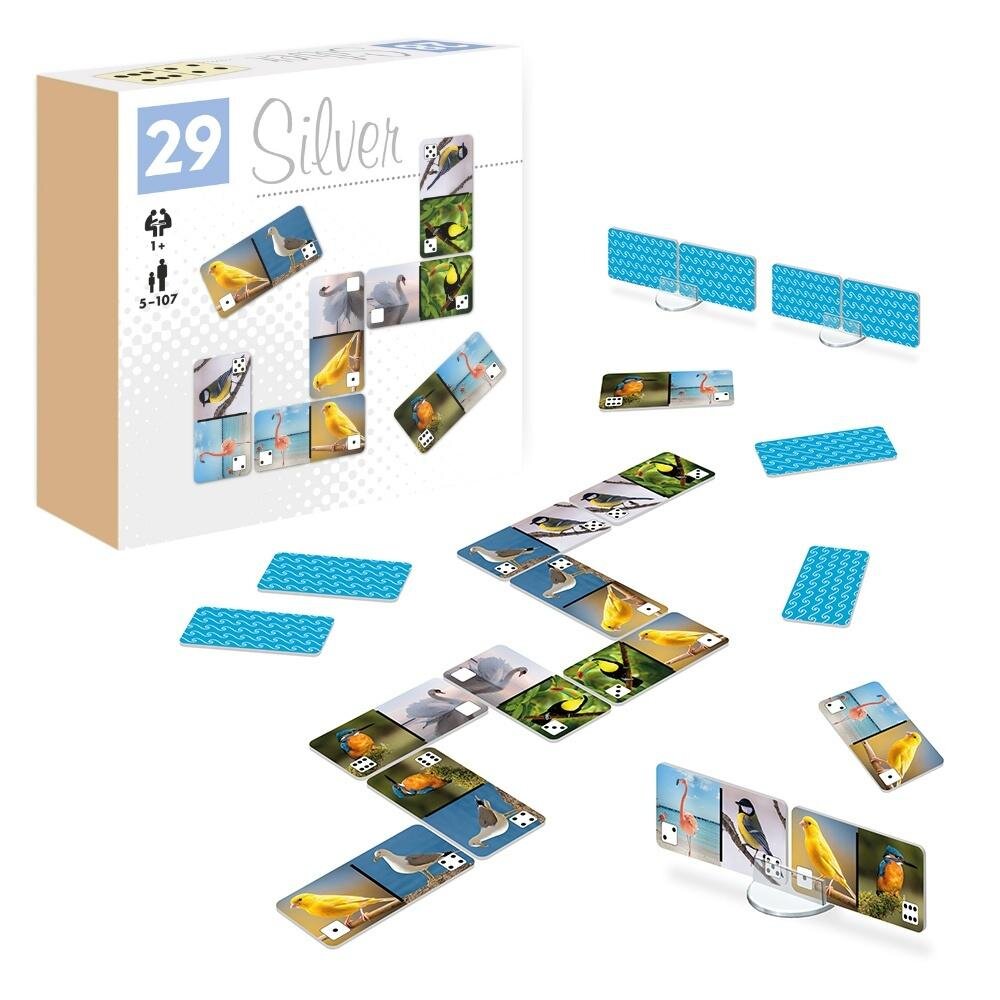 Domino Silver to seria klasycznych gier składających się z prostokątnych tabliczek, przedzielonych na pół za pomocą różnej grafiki. Zabawa polega na właściwym dopasowaniu elementów prezentujących tą samą liczbę kropek. Wygrywa w niej ten, kto pierwszy pozbędzie się swoich tabliczek, przez dokładanie ich do odpowiedników leżących na stole. Większy niż standardowo rozmiar tabliczek ułatwia chwytanie.