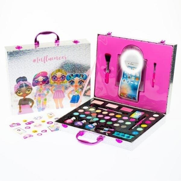 duży zestaw w walizce: cienie, ozdoby, pędzelki, lakiery do paznokci i pedicure.