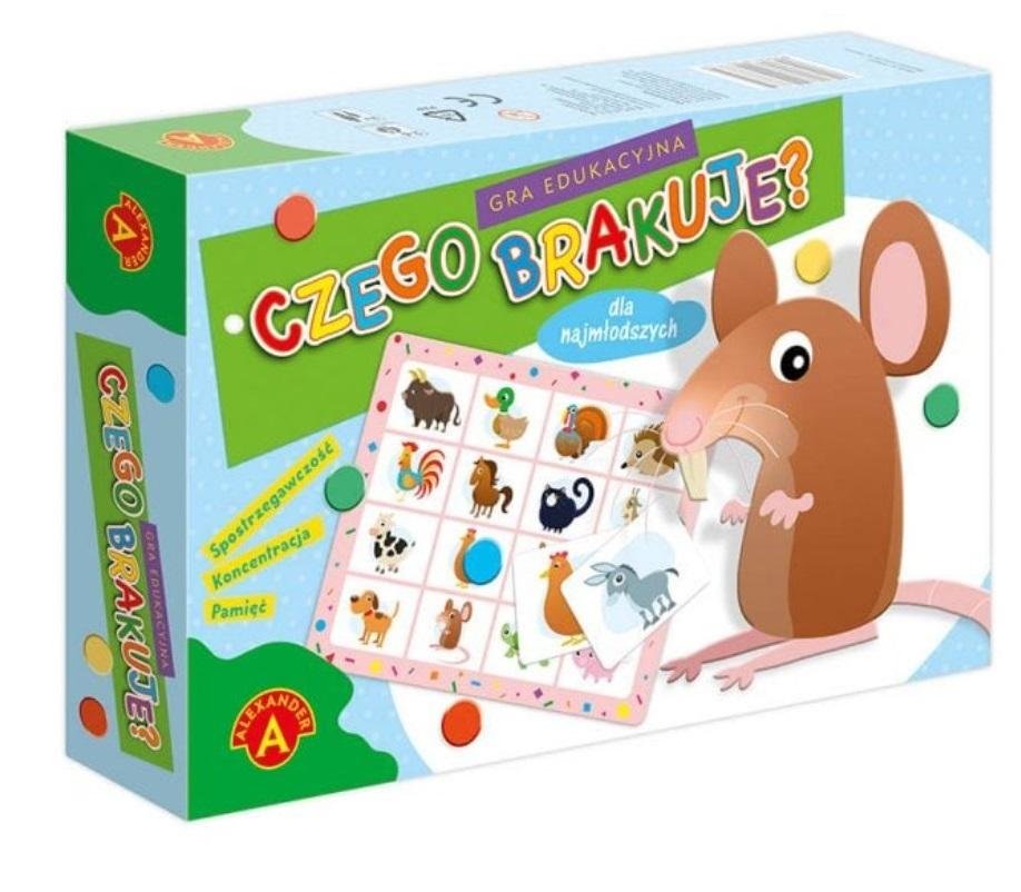 Przesympatyczna zabawa na spostrzegawczość, rozwijająca pamięć. W grze może wziąć udział od 2 do 6 graczy. Każdy z graczy otrzymuje swoją planszę z wizerunkami 16 zwierząt oraz 2 żetony w wybranym przez siebie kolorze. Na stole rozkładamy 6 wybranych tabliczek ze zwierzątkami (identycznymi jak znajdujące się na planszach). Wszyscy gracze przyglądają się wszystkim tabliczkom i próbują zapamiętać jakie zwierzęta są na nich prezentowane. Po krótkiej chwili tabliczki przewraca się rewersem i miesza, odkładając jedną z nich na bok. Pozostałe odwraca się ponownie do góry a każdy z graczy ma za zadanie wskazać brakujące zwierzątko za pomocą żetonów ułożonych na planszy na odpowiednim wizerunku. Jeżeli dziecko jest pewne swojej odpowiedzi kładzie oba żetony na właściwym polu. Jeżeli nie jest przekonane może zdywersyfikować ryzyko kładąc żetony na 2 polach, które jego zdaniem wydają się trafne. Właściwe odpowiedzi są nagradzane czarnymi żetonami. Za wskazanie błędnej odpowiedzi gracz nie ponosi żadnych konsekwencji. Po rozdaniu żetonów powtarzamy rozgrywkę z na nowo wybranymi obrazkami.