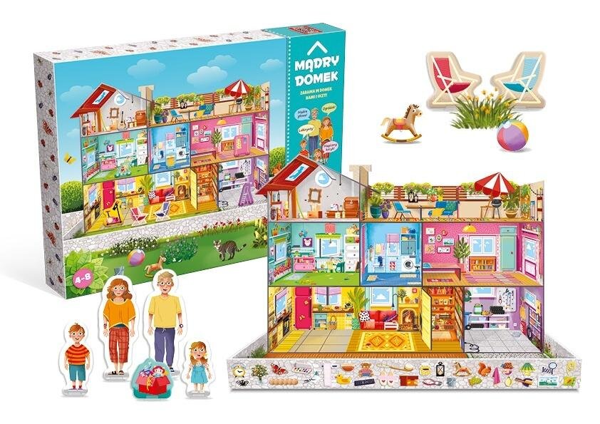 Mądry Domek to wyjątkowe połączenie zestawu kreatywnego, łamigłówek oraz zabawki. Stanowi ciekawą formę nauki i rozrywki dla dzieci w wieku od 4 do 8 lat. W zestawie czeka aż 10 różnych wyzwań!