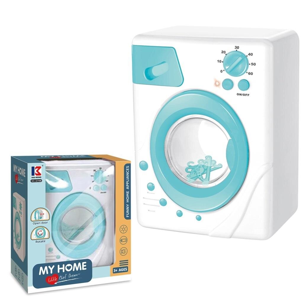 Dzieci mogą wkładać zabawkowe ubrania do bębna, wybrać program prania na panelu sterującym, ustalać temperaturę i czas prania. Gdy pralka się włączy, bęben zaczyna się obracać oraz wydawać dźwięki procesu prania, symulując pracę pralki, co wzbudza zachwyt i ciekawość dzieci.