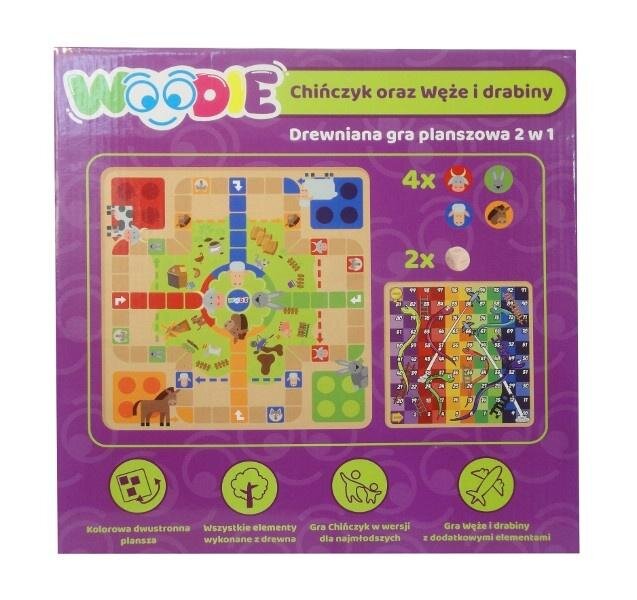 Gra drewniana 2w1 Chińczyk/Węże i drabiny Woodie