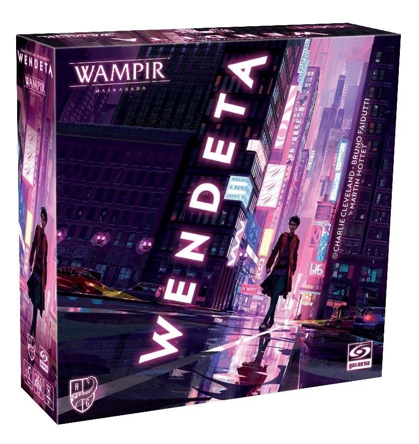 Wampir: Maskarada - Wendeta to asymetryczna rywalizacyjna gra karciana opierająca się na strategii, blefie i dedukcji, zaprojektowana przez uznanych twórców gier planszowych Charliego Clevelanda oraz Bruno Faiduttiego. Od 3 do 5 graczy wcieli się w spiskujące wampiry walczące w różnych dzielnicach miasta o poparcie wpływowych popleczników, by ostatecznie zawładnąć tronem Chicago.