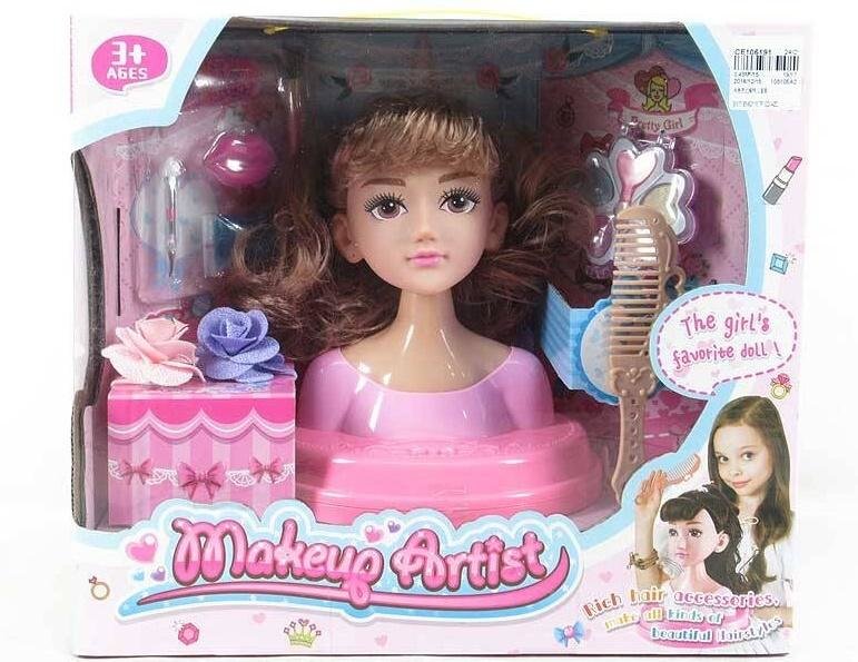 Głowa do stylizacji 25cm. Dodatkowe akcesoria: gumki do włosów, grzebyk, cienie do powiek, trzy błyszczyki, pędzelek do makijażu. Zabawka przeznaczona dla dzieci powyżej 3 roku życia. Produkt nie potrzebuje baterii. číst celé