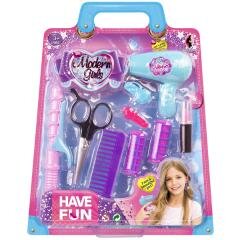 Zestaw Fryzjerski i Do Makijażu dla Małej Stylistki - "Modern Girls" Rozwiń kreatywność i wyobraźnię Twojego dziecka dzięki temu uroczemu zestawowi do zabawy w stylistkę i makijażystkę! Zestaw "Modern Girls" to idealna propozycja dla każdej dziewczynki, która uwielbia dbać o swój wygląd i eksperymentować z fryzurami. Wszystkie elementy zapakowane są w estetyczne opakowanie przypominające walizkę, co ułatwia przechowywanie i przenoszenie. Co znajdziesz w zestawie? Suszarka do Włosów: Stylowa suszarka w odcieniach błękitu i różu, która pozwoli na zabawę w prawdziwe suszenie włosów (zabawka bez funkcji grzania). Nożyczki: Bezpieczne nożyczki do zabawy w strzyżenie. Grzebień: Niezbędny do rozczesywania i układania fryzur. Lusterko: Małe lusterko do podziwiania efektów stylizacji. Lokówki: Dwie urocze lokówki do tworzenia fantazyjnych fal i loków. Szminka: Atrapa szminki (bezpieczna, bezbarwna lub przeznaczona do zabawy), która pozwoli na "makijaż". Prostownica/Lokówka (zabawkowa): Akcesorium do stylizacji włosów. Spinki/Gumki do włosów: Drobne akcesoria do upinania fryzur. Dlaczego warto wybrać ten zestaw? Rozwój Kreatywności i Wyobraźni: Dziecko może tworzyć własne stylizacje, udawać wizyty u fryzjera czy w salonie piękności. Nauka Ról Społecznych: Zabawa w dorosłych i naśladowanie codziennych czynności rozwija umiejętności społeczne i empatię. Bezpieczne Materiały: Wszystkie elementy zestawu wykonane są z bezpiecznych dla dzieci materiałów. Estetyczne Opakowanie: Opakowanie w formie walizki z rączką ułatwia przechowywanie i czyni zestaw idealnym do zabrania w podróż czy do koleżanki. Idealny na Prezent: Doskonały upominek na urodziny, święta lub inną specjalną okazję dla każdej małej miłośniczki mody i stylizacji. Wielkość opakowania: 30x24x3 cm Zapewnij swojemu dziecku godziny kreatywnej zabawy z zestawem fryzjerskim i do makijażu "Modern Girls"!