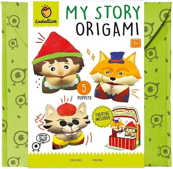 My Story Origami je řada určená k tomu, aby dětem jednoduchým a zábavným způsobem představila fascinující svět origami a pohádek. Kreativní divadelní sada origami pro chlapce a dívky od 5 let. Spojíme-li klasické pohádky s divadlem a origami, vznikne tato úžasná sada My Story Origami. Nejprve musíme vytvořit Pinocchia, Gepetta, vílu, krotitele, kočku a lišku. Pak sestavte hračku a doplňky a hrajte si!