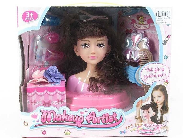 Głowa do stylizacji 25cm. Dodatkowe akcesoria: gumki do włosów, grezbyk, cienie do powiek, trzy błyszczyki, pędzelek do makijażu. Zabawka przeznaczona dla dzieci powyżej 3 roku życia. Produkt nie potrzebuje baterii.