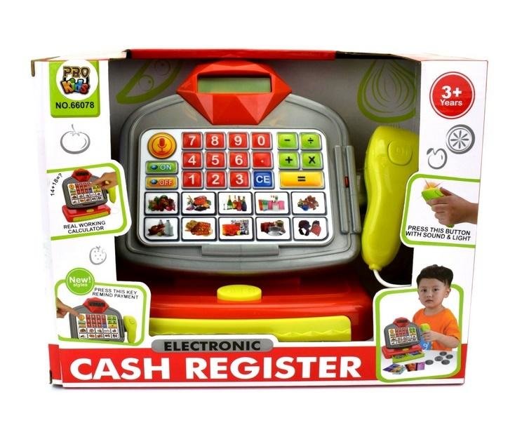 Kasa ze skanerem, banknotami i kartą płatniczą, dziecko ma świetną zabawę, jak również przygotowanie do codziennych obowiązków jakimi zajmują się rodzice "Zakupy". W zabawie kupowaniu, jak i sprzedawaniu pomaga skaner, którym nabijamy dane produkty, jak w prawdziwym markecie. Dziecko bawiąc się, uczy się liczyć, przyjmując banknoty za sprzedane produkty. Kasa na baterie, posiada efekty świetlne, dźwięk. Pełen zestaw akcesoriów. Kasa wyposażona w kalkulator co pozwoli dziecku poznać zasady matematyki i handlu.