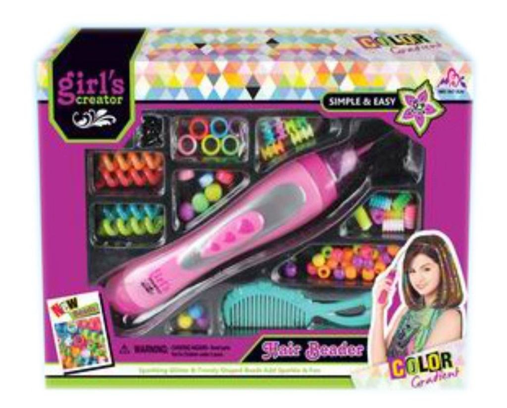 Zestaw do zaplatania włosów zawiera: maszynkę do nawlekania koralików, koraliki oraz grzebień.