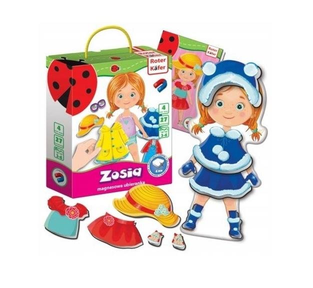 Malá Zosia je vždy připravena na jakékoli počasí - a vaše dítě může pomoci doplnit její šatník podle zimy, jara, léta či podzimu. Sada obsahuje panenku, 27 magnetických částí oblečení a praktickou knížku s instrukcemi, které vysvětlují kombinace oblečení a roční období. Kromě samotného oblékání najdete v knížce také tematické úkoly, díky nimž se zlepšuje pozornost, paměť i logické uvažování vašich dětí.