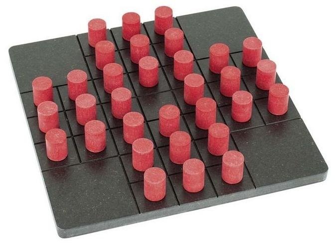Na 33 polach rozmieszczonych na planie krzyża umieszczamy 32 pionki (tylko jedno pole powinno pozostać puste).