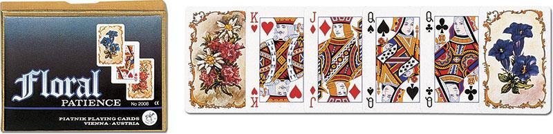 Najwyższej jakości karty do pasjansa renomowanej firmy Ferd. Piatnik & Sohne. Eleganckie pudełeczko kryje 2 niewielkie talie. Mniejszy format sprawia, że łatwiej układa się pasjansa. Talie składają się z 55 plastikowanych kart o wymiarach 44 x 66 mm i gramaturze 310. Wyroby wiedeńskiej fabryki Ferd. Piatnik & Sohne od 1824 roku urzekają bogactwem wzorów i perfekcją wykonania. Jakość i tradycja!