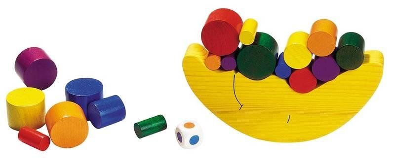 Balansujący księżyc to wspaniała gra dla całej rodziny. Układanie wieży z walcowatych klocków na ciągle bujającym się księżycu to zadanie wymagające koncentracji i sprawnych rąk. A ile przy tym śmiechu! Znakomita gra, ćwicząca koordynację wzrokowo-ruchową oraz wyobraźnię przestrzenną dziecka. Rozwija także umiejętność myślenia strategicznego.