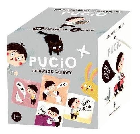 Zestaw składa się z 32 obrazków. Na kartonikach znajdują się obrazki z wyrażeniem dźwiękonaśladowczym, a także obiektem lub zwierzęciem wydającym dany dźwięk oraz wizerunkiem Pucia ulubionego bohatera maluchów. Wyrażenia dźwiękonaśladowcze są wypowiadane już przez roczne dzieci i stanowią bardzo istotny element rozwoju mowy. Zebrane w estetycznym pudełku obrazki dają okazję do rozmaitych zabaw, w zależności od możliwości intelektualnych i potrzeb dziecka: nauki nazywania obiektów, powtarzania i rozpoznawania wyrażeń dźwiękonaśladowczych, wyszukiwania wskazanych przez rodziców obiektów spośród kilku wybranych kartoników i wielu innych gier (opisanych w dołączonej do zestawu instrukcji).