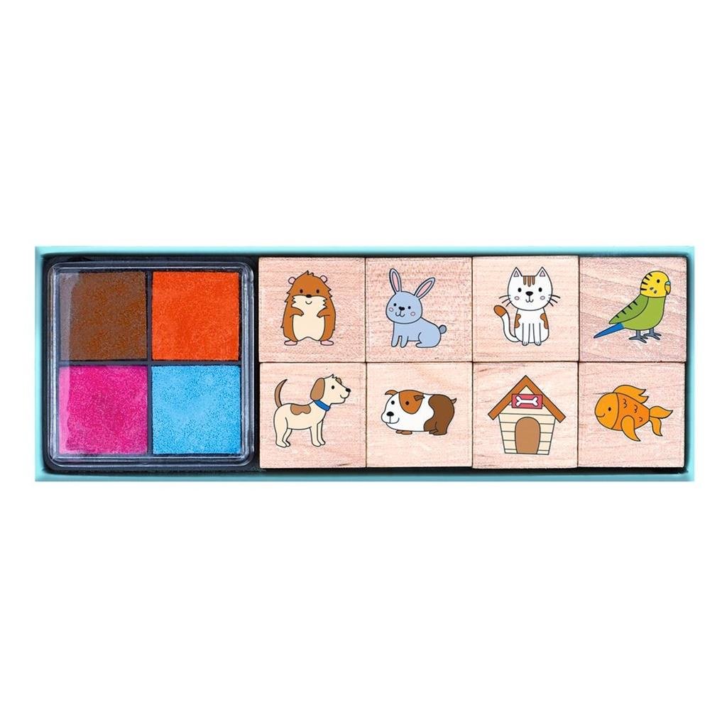 Drewniane stempelki przedstawiające Zwierzęta Domowe to niezwykłe gadżety, które sprawią ogromną radość każdemu maluchowi, w wyjątkowy sposób rozwijają ich kreatywność. W zestawie znajdziemy 8 stempelków: chomika, króliczka, kotka, papugę, świnkę morską, rybkę i pieska oraz jego budę oraz 4 tusze: niebieski, pomarańczowy, brązowy i czerwony.