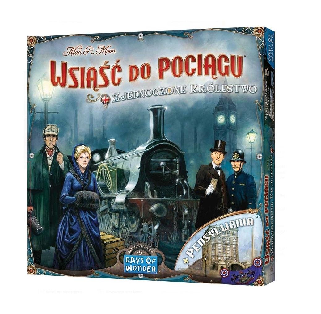 Dodatek Wsiąść do Pociągu: Zjednoczone Królestwo / Pensylwania zawiera także mapę Pensylwanii - stanu w Ameryce Północnej, w którym kolejnictwo nadawało rytm codziennemu życiu, a jego historia do dziś rozpala umysły i wyobraźnię wielu osób. Co więcej! Nowe zasady, które wprowadza ten dodatek, pozwolą Ci inwestować w udziały kompanii przewozowych, które mogą stać się potencjalnymi liderami na rynku. Nie pozwól jednak, by Twoi przeciwnicy przejęli pakiet kontrolny danej spółki, bo to grozi utratą zysków z przychodów danej kompanii! Wsiąść do Pociągu: Zjednoczone Królestwo / Pensylwania jest rozszerzeniem do każdej podstawowej edycji gry Wsiąść do pociągu.